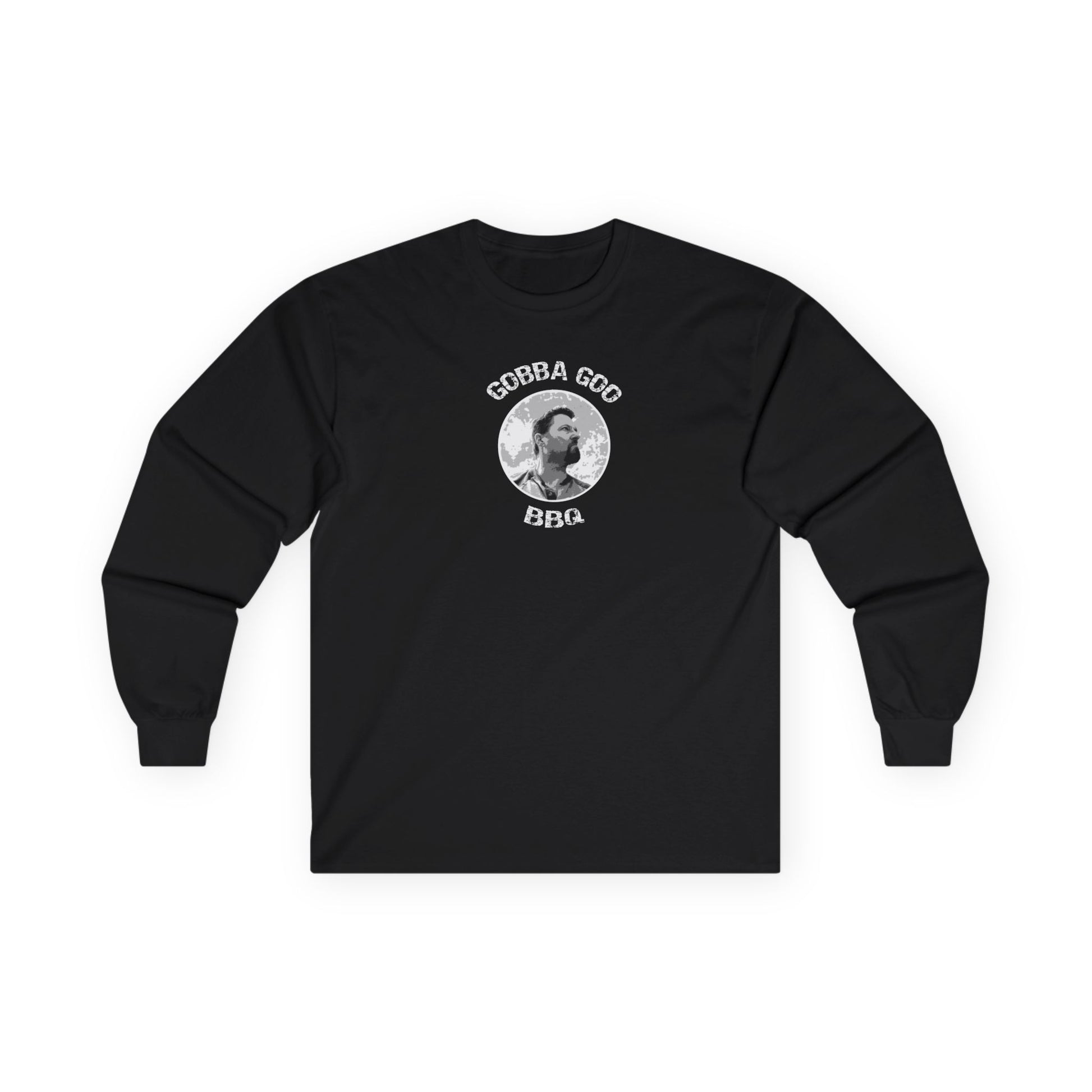 Black Gobba Goo BBQ Unisex Long Sleeve Tee with BBQ Theme, Funny Gift for BBQ Lovers, Casual Wear, Men’s and Women’s Tee, Outdoor Cooking Shirt