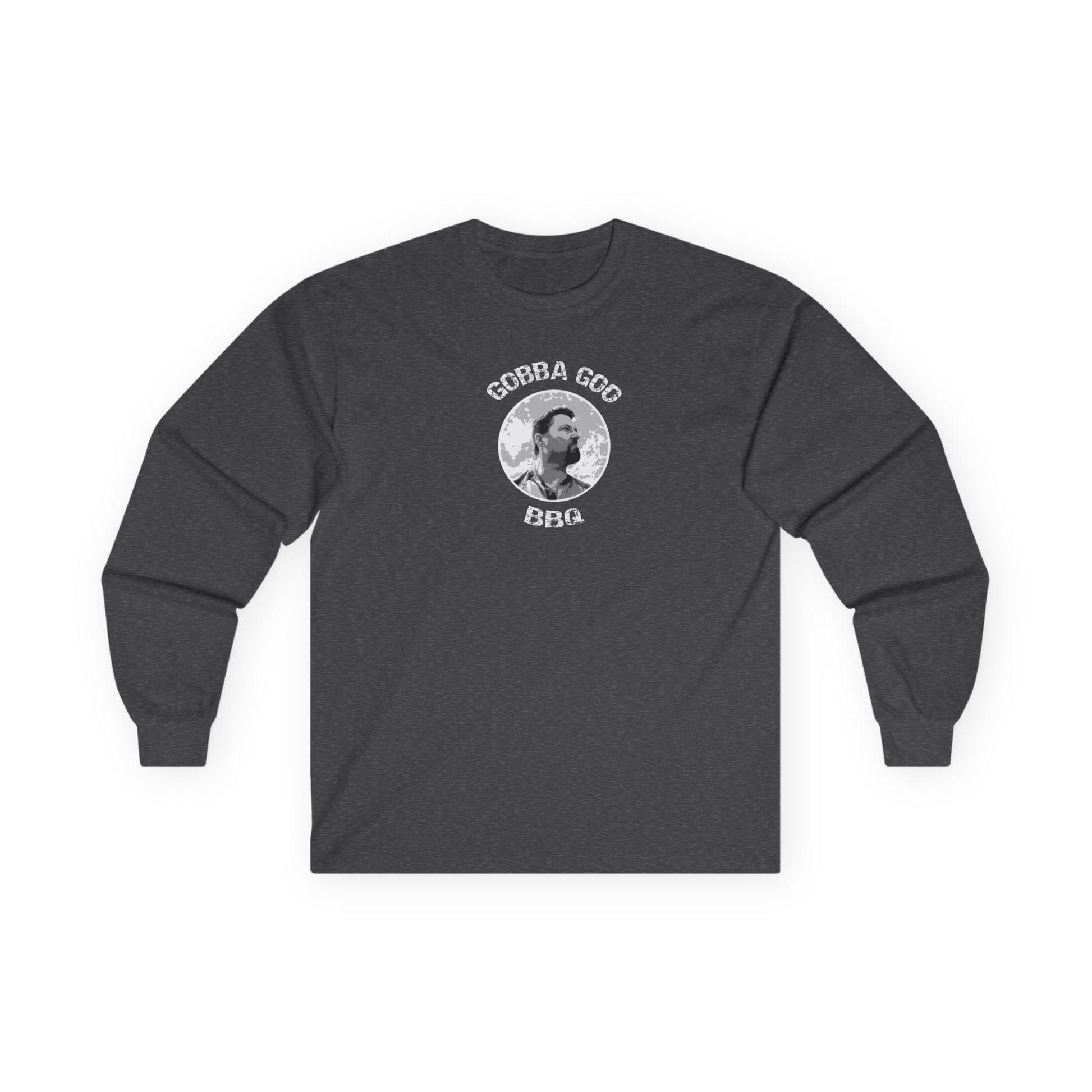 Dark Gray Gobba Goo BBQ Unisex Long Sleeve Tee with BBQ Theme, Funny Gift for BBQ Lovers, Casual Wear, Men’s and Women’s Tee, Outdoor Cooking Shirt